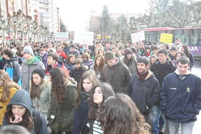 Centenares de estudiantes de Secundaria, Bachillerato y de la Universidad de La Rioja han reclamado este jueves por las calles de Logroño la retirada de la LOMCE y la dimisión del ministro de Educación, José Ignacio Wert.